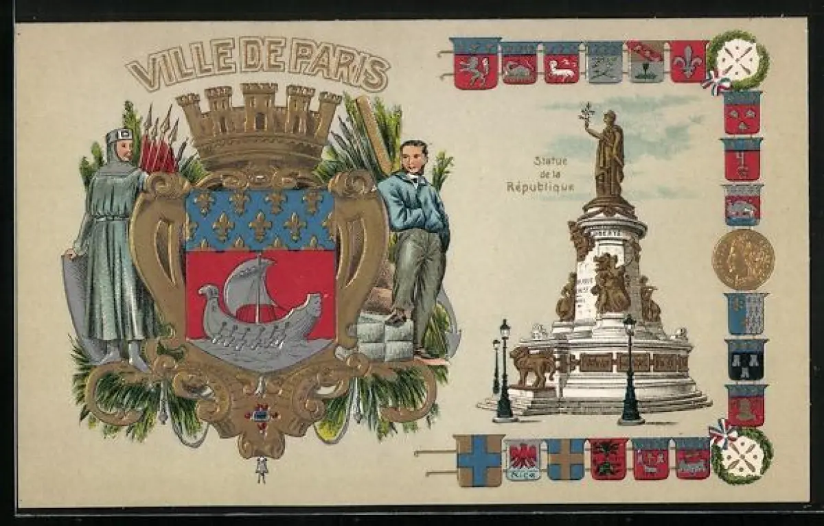 AK Paris III, Ville de Paris, Statue de la Republique, Wappen, Segelschiff