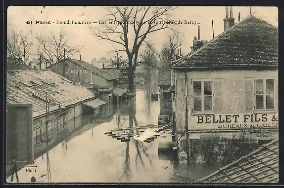 AK Paris, Inondation 1910, Les entrepôts de vins et spiritueux de Bercy