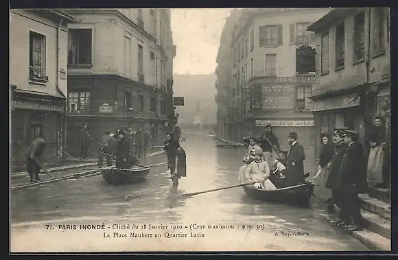 AK Paris, Inondation 1910 à la Place Maubert avec barques dans le Quartier Latin