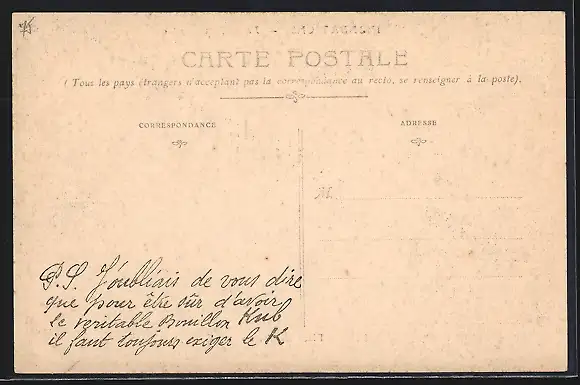 Personenbezogene Daten auf der Rückseite der Karte wurden durch blauen Textmarker unkenntlich gemacht. Die blauen Stellen sind auf die Vorderseite durchgeweicht und wirken sich negativ auf das Postkartenfoto aus