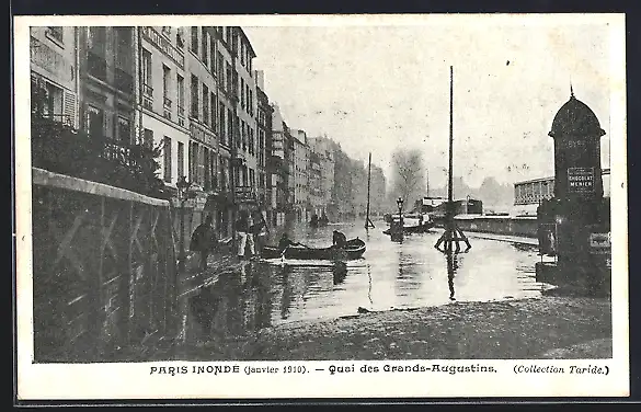AK Paris, Inondation de janvier 1910, Quai des Grands-Augustins