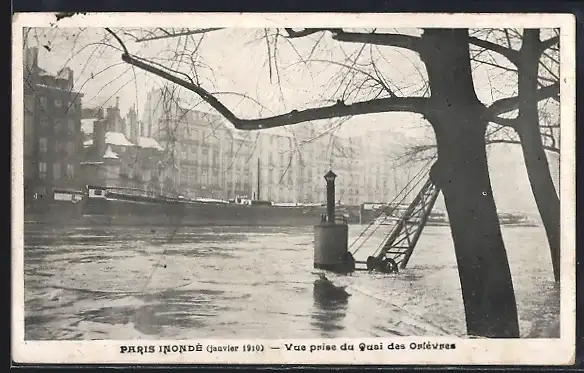 AK Paris, Inondation de janvier 1910, Vue prise du Quai des Orfèvres