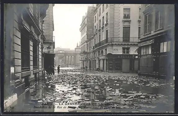 AK Paris, Inondation de la Rue de Bourgogne lors de la grande crue de la Seine 1910
