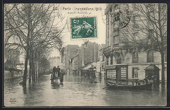 AK Paris, Inondations 1910, Attelage rue Groix inondée