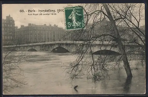AK Paris, Inondations 1910, Vue du Pont Royal submergé en janvier