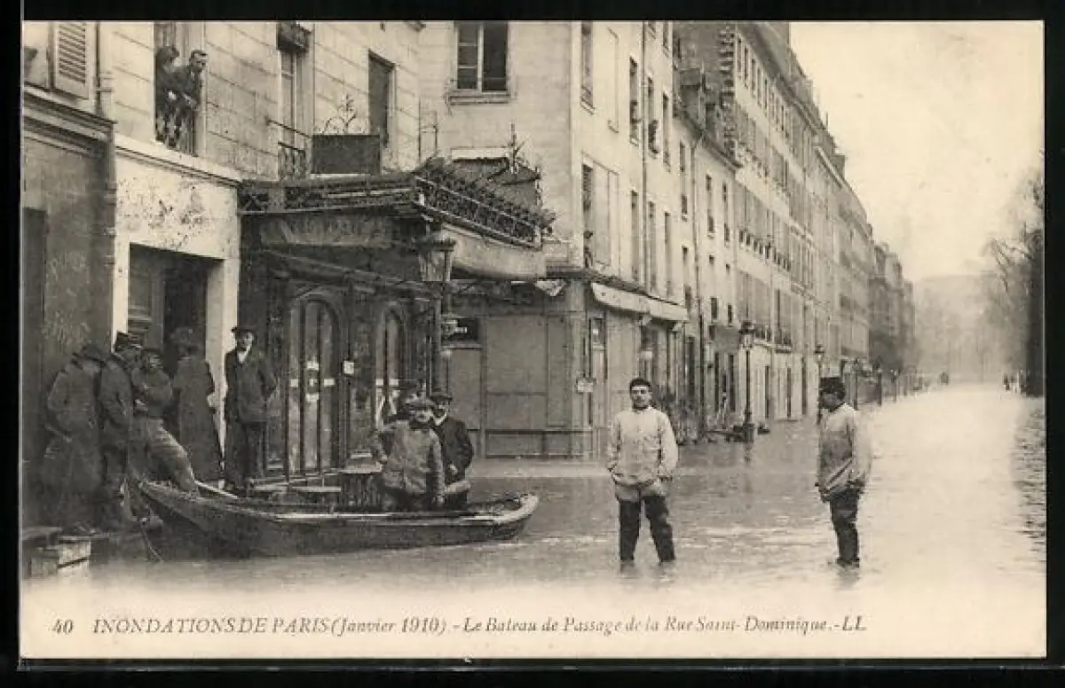 AK Paris, Inondations de 1910, Le Bateau de Passage de la Rue Saint-Dominique