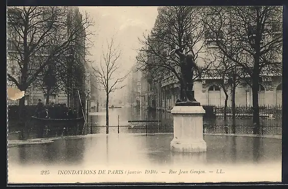 AK Paris, Inondations de 1910, Rue Jean Goujon avec statue et arbres inondés