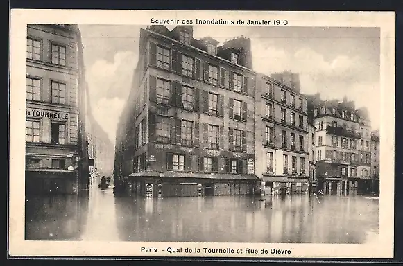 AK Paris, Inondations de 1910 au Quai de la Tournelle et Rue de Bièvre