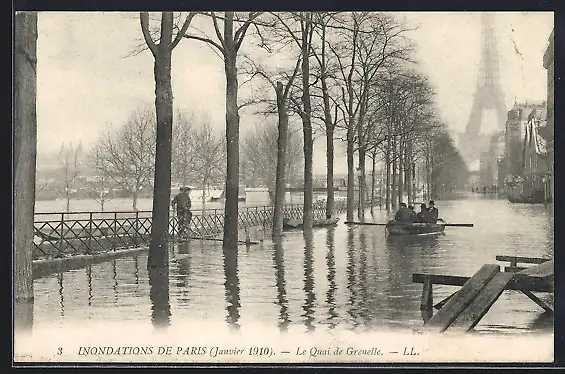 AK Paris, Inondations de 1910, le Quai de Grenelle et la Tour Eiffel