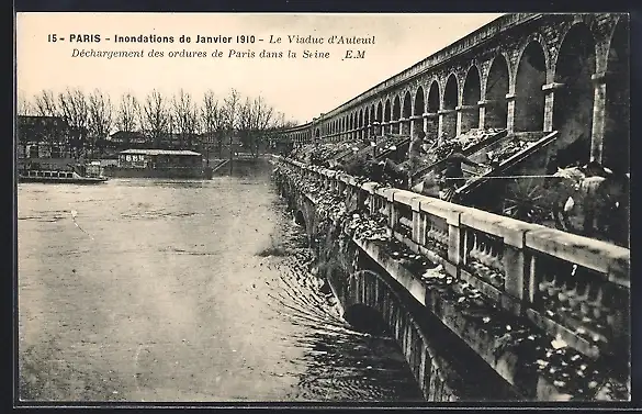AK Paris, Inondations de Janvier 1910, Le Viaduc d`Auteuil et déchargement des ordures dans la Seine
