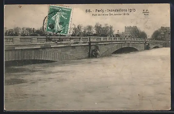 AK Paris, Inondations de Janvier 1910, Pont de l`Alma