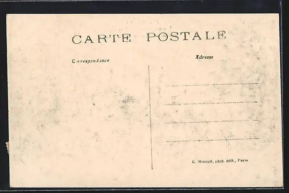 Personenbezogene Daten auf der Rückseite der Karte wurden durch blauen Textmarker unkenntlich gemacht. Die blauen Stellen sind auf die Vorderseite durchgeweicht und wirken sich negativ auf das Postkartenfoto aus