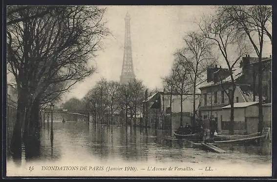 AK Paris, Inondations de janvier 1910, L`Avenue de Versailles et la Tour Eiffel inondées