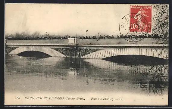 AK Paris, Inondations de janvier 1910, Pont d`Austerlitz sous les eaux