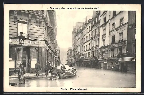 AK Paris, Inondations de janvier 1910 à la Place Maubert avec barque