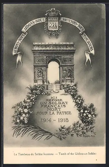 AK Paris, L`Arc de Triomphe, Triumphbogen, Grabmal eines unbekannten Soldaten