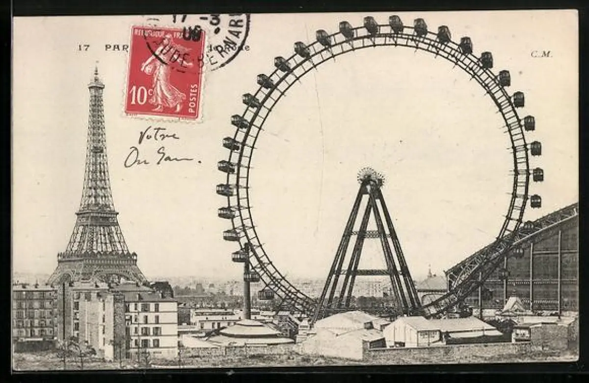 AK Paris, La Grande Roue et la Tour Eiffel