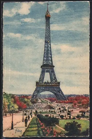 AK Paris, La Tour Eiffel, Partie im Park mit Blick zum Eiffelturm