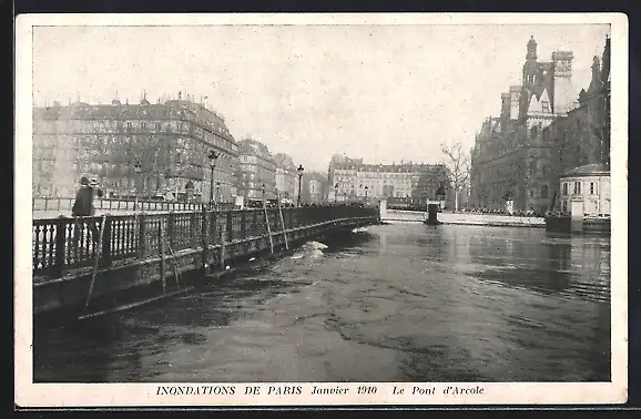 AK Paris, Le Pont d`Arcole, Inondations 1910