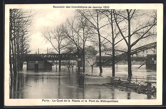 AK Paris, Le Quai de la Rapée et le Pont du Métropolitain lors des inondations de janvier 1910