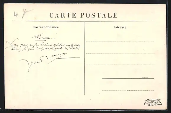 Personenbezogene Daten auf der Rückseite der Karte wurden durch blauen Textmarker unkenntlich gemacht. Die blauen Stellen sind auf die Vorderseite durchgeweicht und wirken sich negativ auf das Postkartenfoto aus
