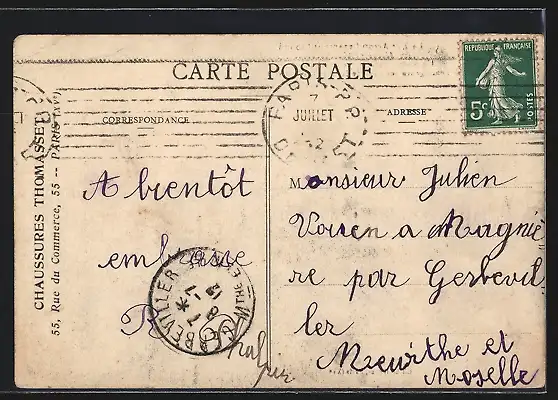 gelaufen 1912, Eckknick und Bugspur re. oben, guter Zustand