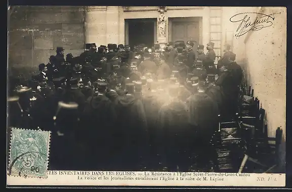 AK Paris, Les Inventaires dans les Eglises, Erstürmung der besetzten Kirche 1906