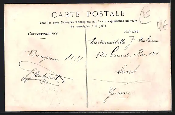 Personenbezogene Daten auf der Rückseite der Karte wurden durch blauen Textmarker unkenntlich gemacht. Die blauen Stellen sind auf die Vorderseite durchgeweicht und wirken sich negativ auf das Postkartenfoto aus