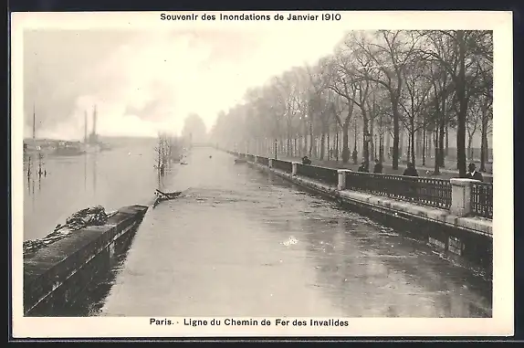 AK Paris, Ligne du Chemin de Fer des Invalides inondée en 1910