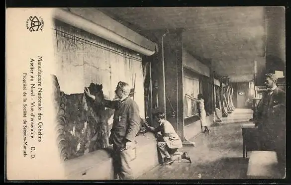 AK Paris, Manufacture Nationale des Gobelins, Atelier du Nord, Vue d`ensemble, Arbeiter in der Teppichmanufaktur