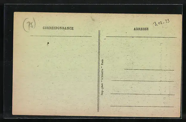 Personenbezogene Daten auf der Rückseite der Karte wurden durch blauen Textmarker unkenntlich gemacht. Die blauen Stellen sind auf die Vorderseite durchgeweicht und wirken sich negativ auf das Postkartenfoto aus