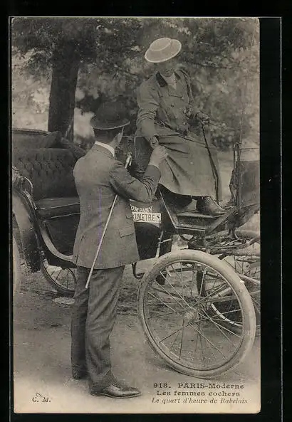 AK Paris, Moderne, Les femmes cochers, Le quart d`heure de Rabelais, Frau auf einem Auto, Emanzipation
