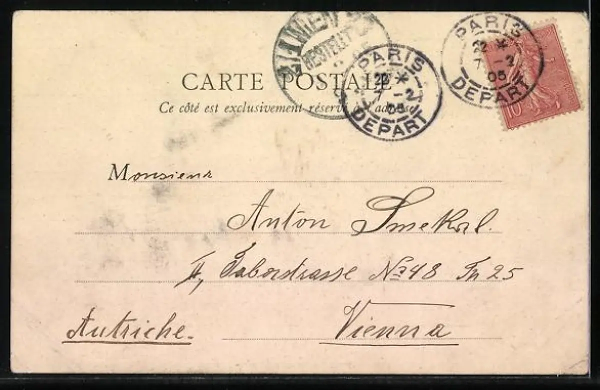 alte Ansichtskarte, gelaufen 1905, Eckknicke unten, Stempelspur, guter Zustand
