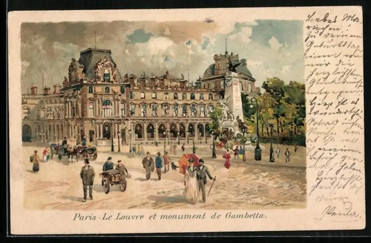 AK Paris, Paris, Le Lourvre et monument de Gambetta