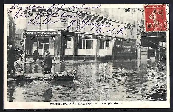 AK Paris, Place Maubert inondée lors de la crue de janvier 1910
