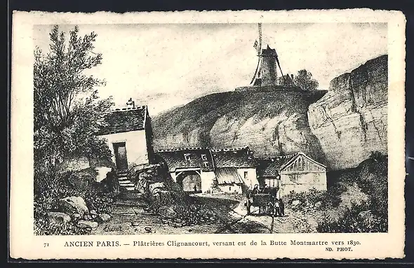 AK Paris, Plâtrières Clignancourt, versant est de la Butte Montmartre vers 1830