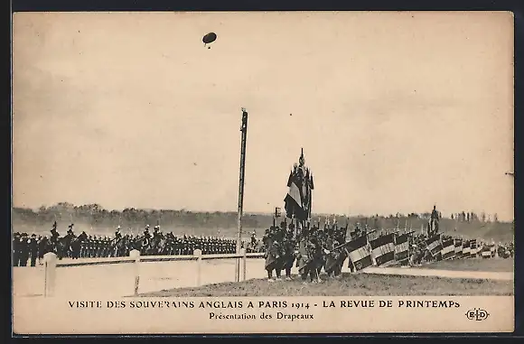 AK Paris, Présentation des Drapeaux, Visite des Souverains Anglais 1914