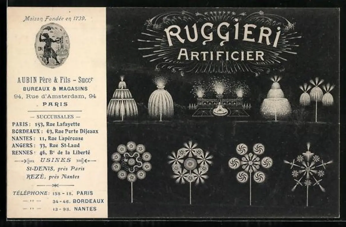 AK Paris, Reklame, Ruggiere Artificier, Aubin Père & Fils, Rue d`Amsterdam