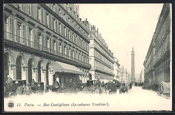 AK Paris, Rue Castiglione, la colonne Vendome