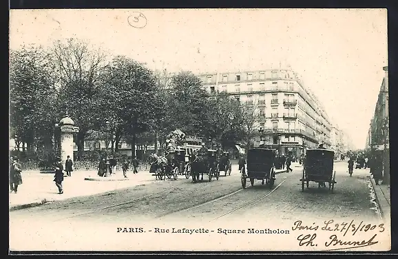 AK Paris, Rue Lafayette, Square Montholon, Strassenpartie