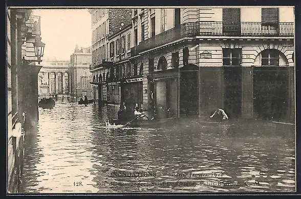 AK Paris, Rue de Seine inondée avec barques, crue de 1910