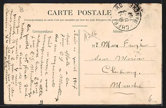 alte Ansichtskarte, gelaufen 1907, Stempelspur, guter Zustand