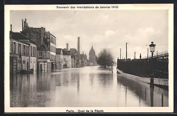 AK Paris, Souvenir des Inondations de Janvier 1910, Quai de la Rapée inondé
