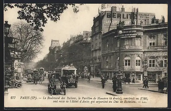 AK Paris VIII, Le Boulevard des Italiens, La Pavillon de Hanovre