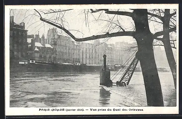 AK Paris, Vue prise du Quai des Orfèvres lors de l`inondation de janvier 1910