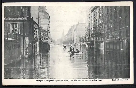 AK Paris, avenue Ledru-Rollin, Hochwasser, Boote