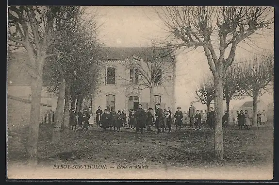 AK Paroy-sur-Tholon, École et Mairie avec des enfants devant le bâtiment