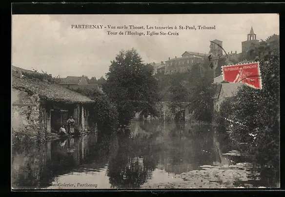 AK Parthenay, Vue sur le Thouet, Les tanneries à St-Paul, Tribunal Tour de l`Horloge, Eglise Ste-Croix