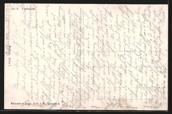 Personenbezogene Daten auf der Rückseite der Karte wurden durch blauen Textmarker unkenntlich gemacht. Die blauen Stellen sind auf die Vorderseite durchgeweicht und wirken sich negativ auf das Postkartenfoto aus
