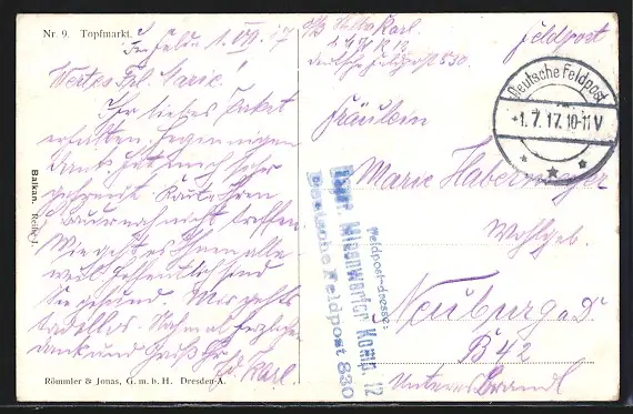 alte Ansichtskarte, gelaufen 1917, guter Zustand